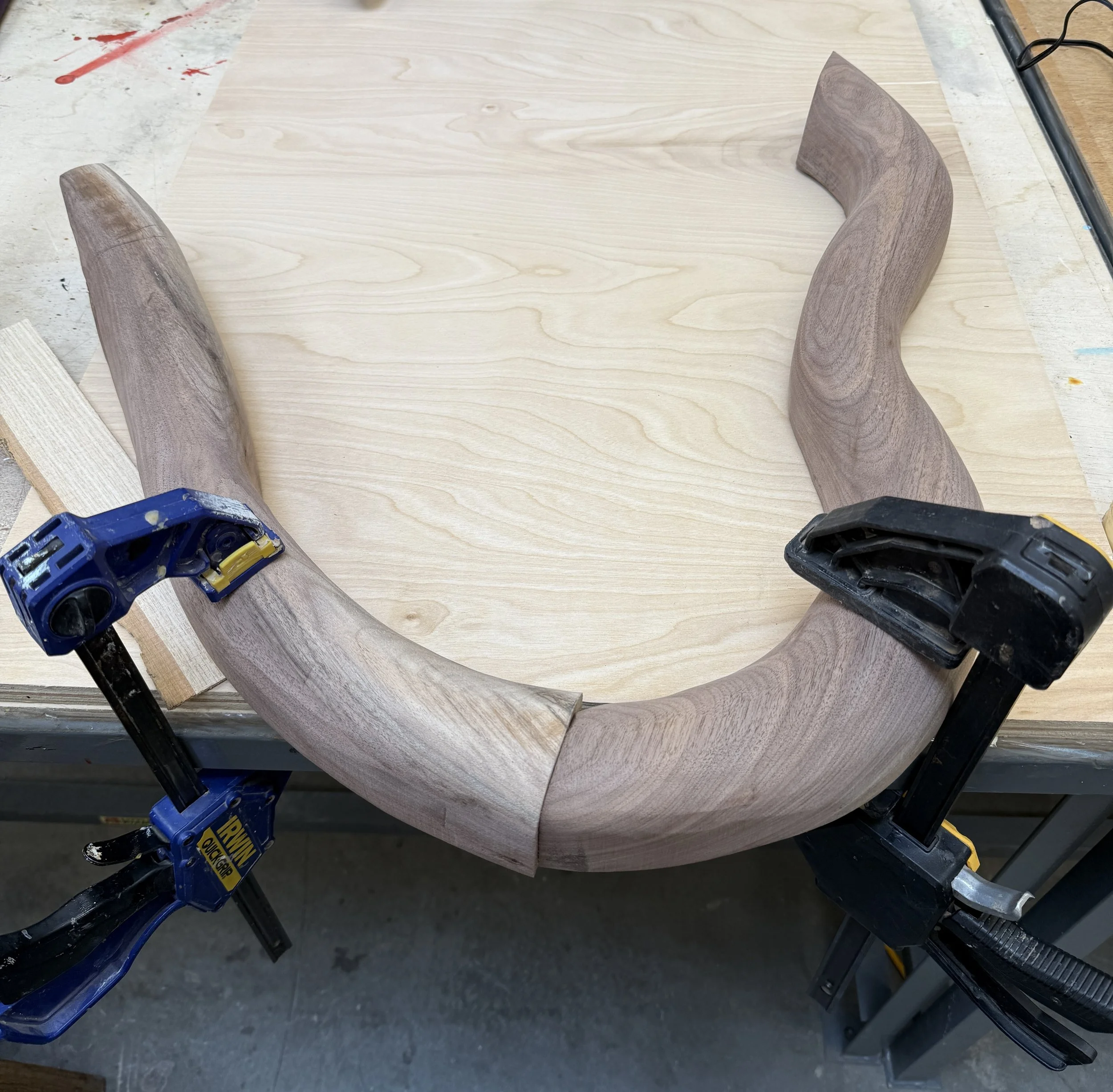 Connected! Notice the overhangs I then get rid of with belt + circular + hand sanding
